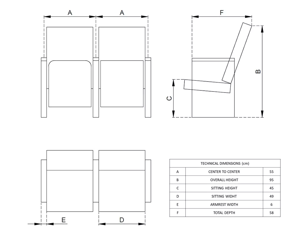 SAPPHIRE 03 This modern theatre seat is designed with high-density foam and removable writing tablets, offering comfort and flexibility for theatres and conference halls.