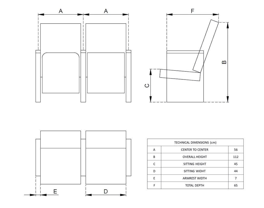 SUNSTONE Featuring ergonomic foam padding and sturdy construction, this theatre seat is built to provide long-lasting support for high-traffic theatres and auditoriums.