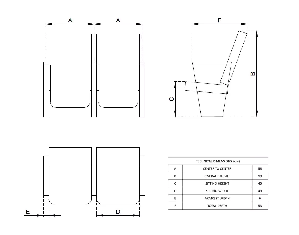 ZIRCON S V 02 Designed for maximum versatility, this theatre seat includes removable writing tablets and fire-resistant upholstery, ideal for both performance and educational settings.